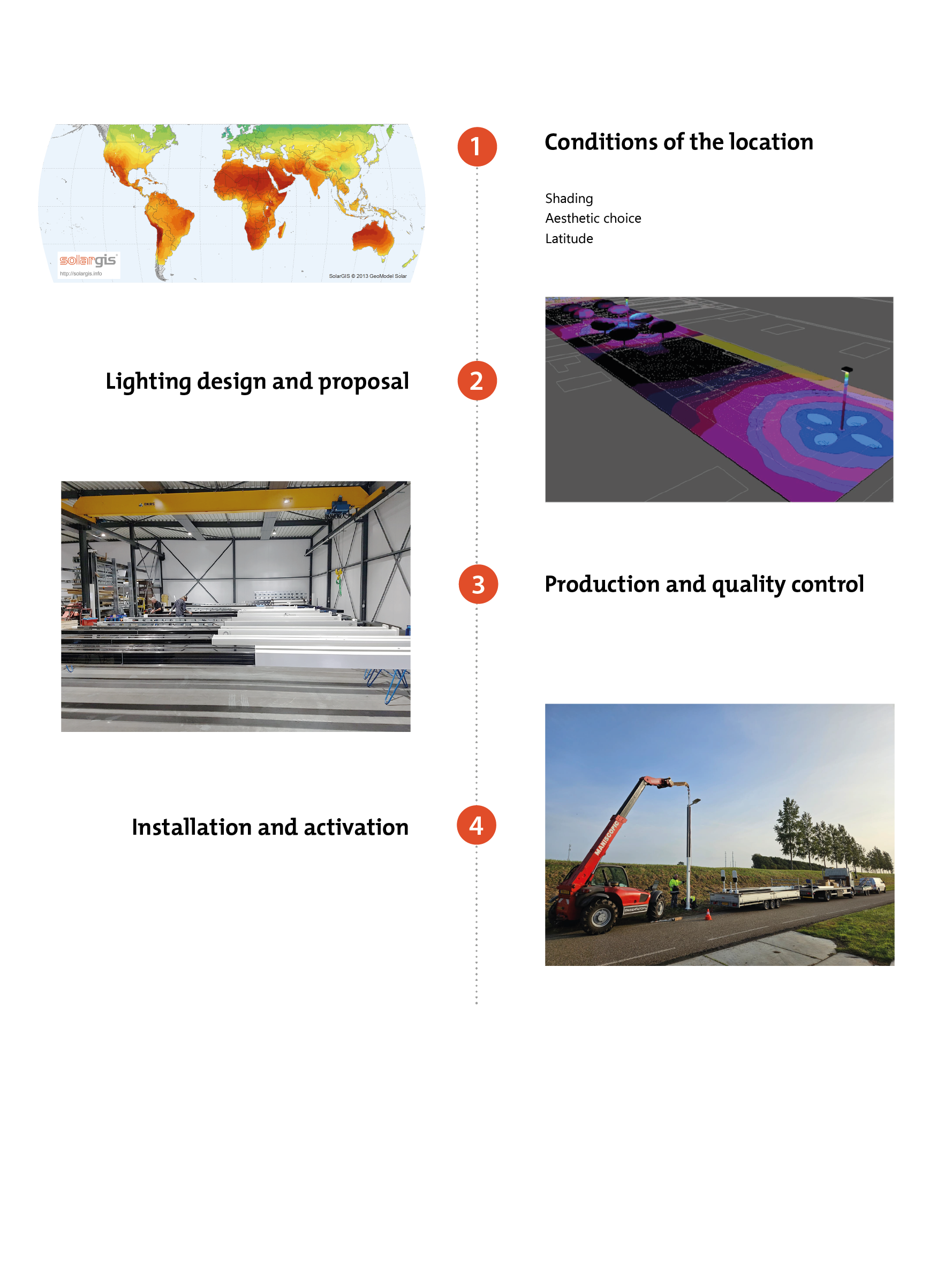 How do I select the best product? That is the question we help our clients best with. Since you – as a potential customer – are a pioneer considering solar lighting, we feel it is our obligation to inform and transfer knowledge about solar lighting first. We support you in making a plan, preferably in a very early stage.